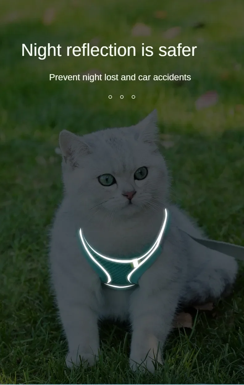 Included with the harness is a matching leash, allowing you to easily and securely guide your pet while exploring the outdoors. The quick-release buckle and sturdy D-ring ensure easy on-and-off functionality, while the reflective strips enhance visibility during nighttime walks, adding an extra layer of safety.